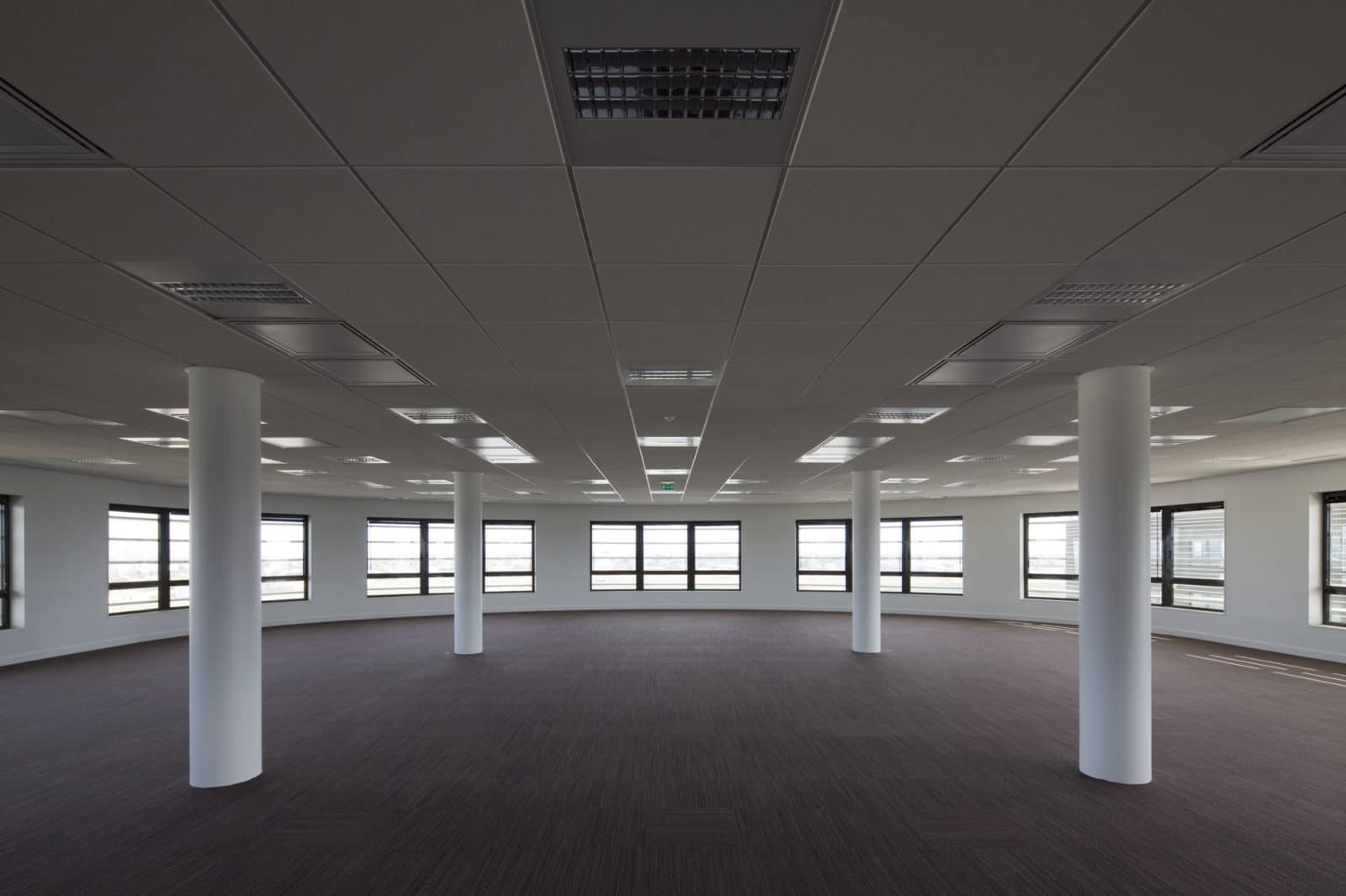 Ce voile de béton permet de relié les deux bâtiments tout en offrant une vue sur le parvis et une continuité du paysage. Un atout du projet est la division du programme en deux bâtiments distinct mais avec une peau commune, cela permet une certaine modularité de l’occupation des locaux, ainsi deux entreprises peuvent occuper les locaux. Les plateaux d’une superficie de 850 m² chacun sont distribués par un noyau central. Il accueille également les différentes gaines techniques.