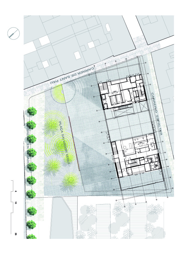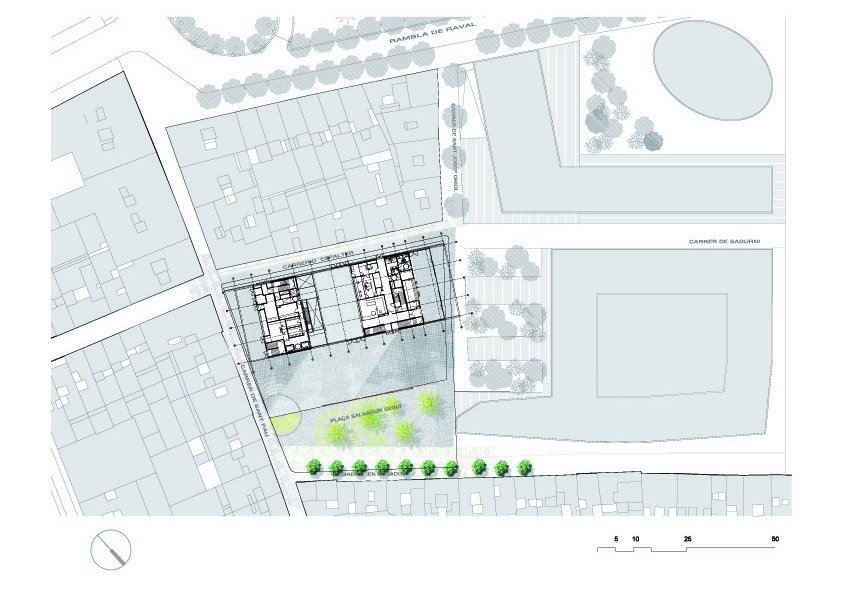 Le site est proche du Carrer de Robador, dans un quartier populaire en réhabilitation. Le bâtiment a la chance de côtoyer une place, lieu de rencontre et d’évènements. Le centre intègre le décor de la scène du marché avec un RDC proposant divers services pour le public, le bâtiment épouse la rue carrero espalter assurant une continuité des façades de la rue.