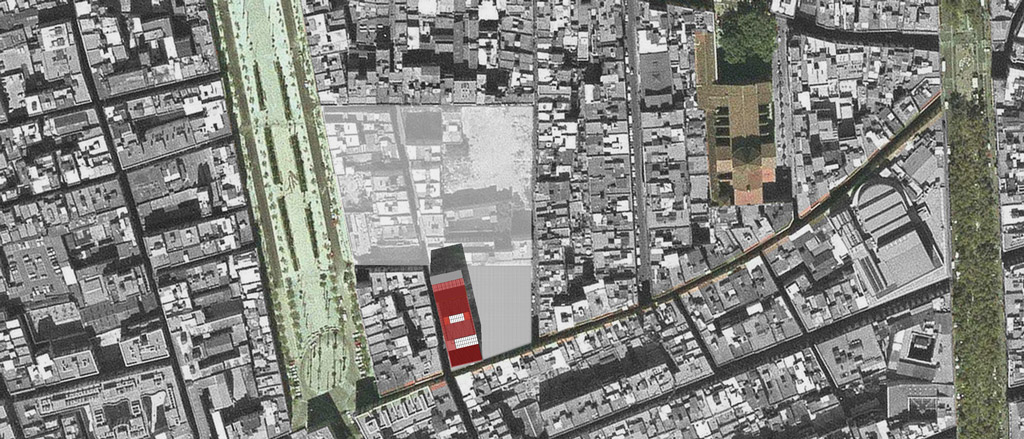 Dans la vielle ville, mon bâtiment s’expose à s’exprimer en tant qu’une pure structure, pas de bardages, pas de finitions. Les poteaux-poutres-murs en béton brut qui forment les façades sont très variés, prouvant qu’ils sont de la même familles que les murs délabrés voisins, où l’enduit extérieur s’effrite pour révéler la masse porteuse originale des édifices.