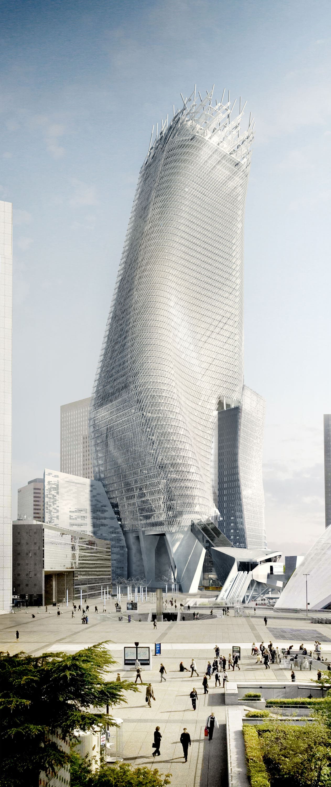 Le projet est né en 2006 lors d’une compétition internationale où se sont rencontré Manuelle Gautrand, Jean Nouvel, Jacques Ferrier et d’autres. C’est finalement l’Etats-unien Thom Mayne avec l’agence Morphosis qui remporte le concours. En aout 2010, Unibail, maître d’ouvrage, obtient le permis de construire après la révision du POS de Puteaux. Cette tour de 297 mètres sera la plus haute de France, il faut dire que nos voisins outre-manche ont su se démarquer depuis plusieurs années.