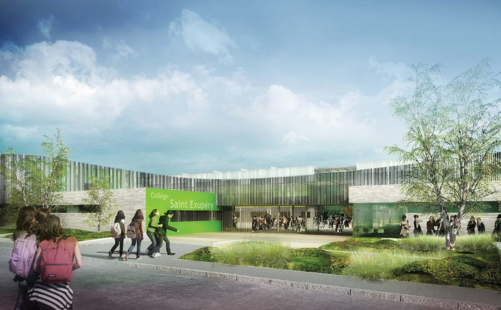 En chantier depuis l’année dernière, le collège Saint-Exupéry situé dans le quartier d’Hellemmes à Lille s’achèvera à la rentrée 2013. Remporté par l’agence M.P. Bouchez Architectes face à Alzua + et Paindavoine Parmentier, ce collège accueillera près de 600 élèves ainsi que 80 SEGPA (Champ professionnel Hygiène Alimentation Service et Champs professionnel Peinture Revêtement).