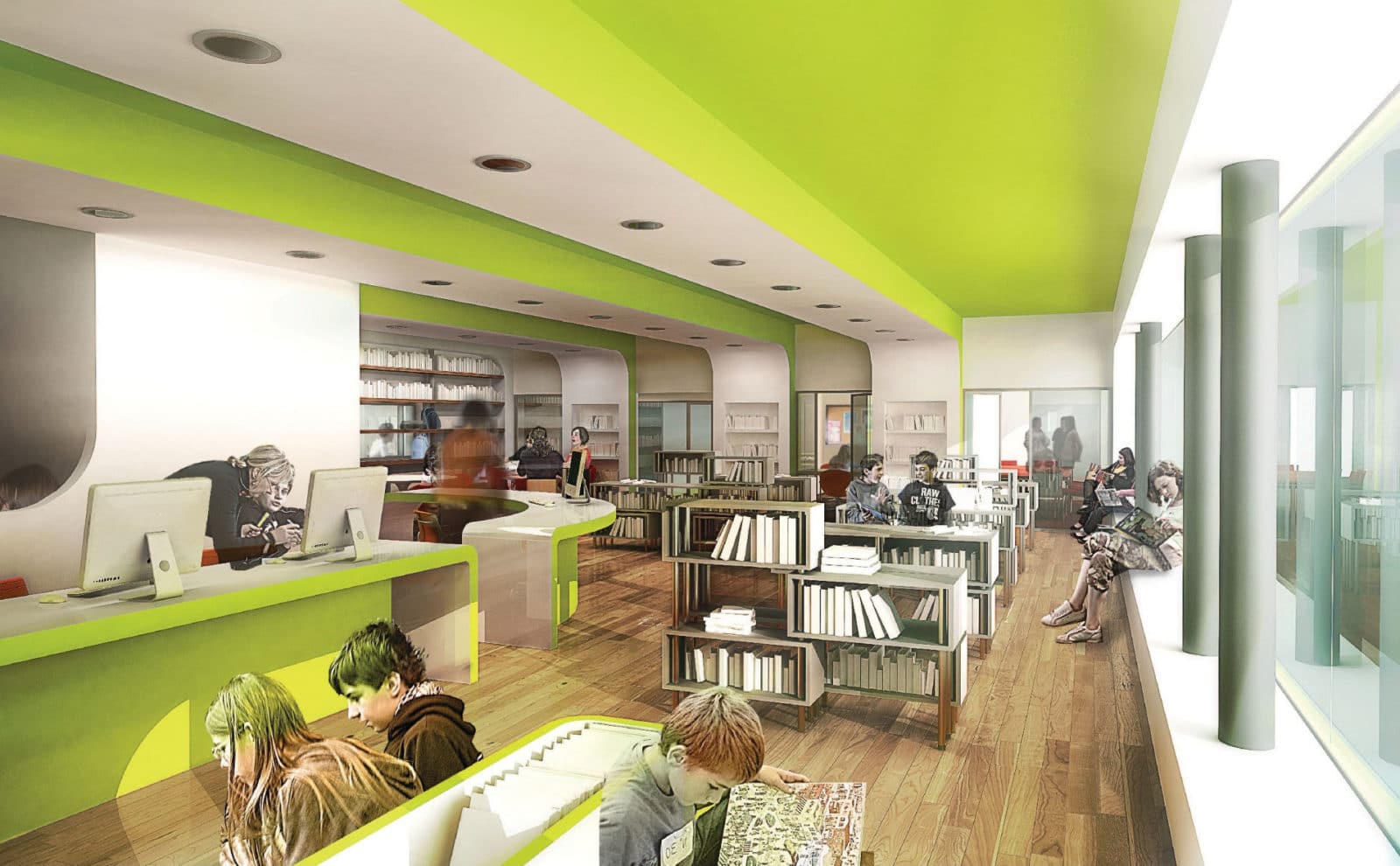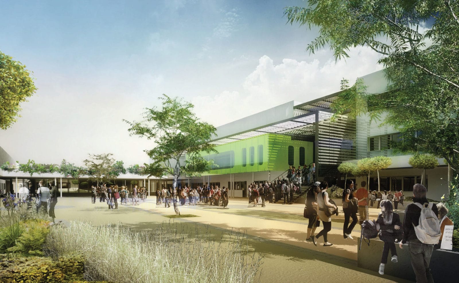 Le nouveau collège forme une enceinte dans laquelle la cours se positionne en élément central. Un préau ouvert divise la cours en deux espaces et sert de trait d’union entre l’externat et l’internat. Il pourra héberger près de 100 collégiens en pensions.