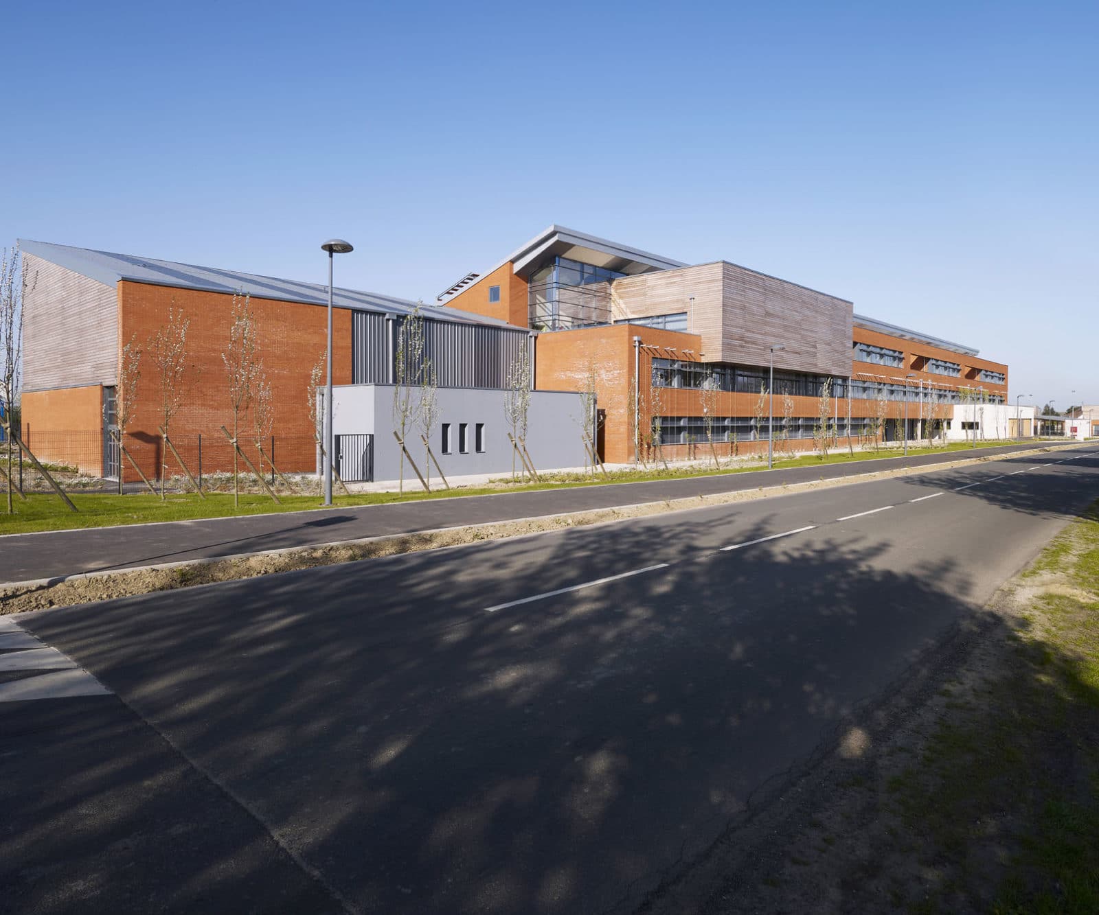 Remporté en 2005 par l’agence Escudié-Fermaut Architecture, le collège Simone Veil a ouvert ses portes en septembre dernier à Capelle en Pévèle entre Douai et Lille. Le projet labellisé HQE se veut respectueux de son cadre initial par le choix de ses matériaux à l’exemple de la terre cuite locale.