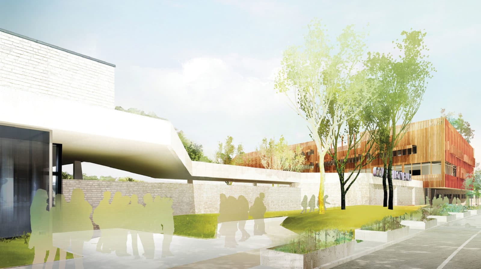 L’agence lilloise M. P. Bouchez Architectes construit actuellement un collège de 650 élèves à Villeneuve d’Ascq à l’Est de Lille. Remporté en septembre 2010, le concours rassemblait trois équipes : Béal & Blanckaert avec Iosis ingénierie (BET), A.Lecoeur (paysagiste), J.M. Becquart (économiste), P. Legrand (cuisiniste) ; l’équipe Atlante Architectes avec VPEAS (économiste) et l’équipe lauréate menée par l’agence M. P. Bouchez Architectes avec Maning (BET), Addenda (BET Environnement), Sylvaine Willems (paysagiste) et RPO (économiste).