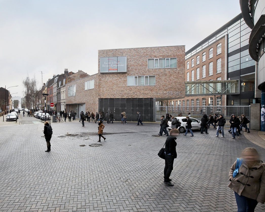 La Faculté de Finance, Banque, Comptabilité de Lille s’est dotée en 2009 d’un nouveau bâtiment conçu par Damien Surroca Architectes. La faculté qui compte 12 000 étudiants avait lancé un concours en 2007. Le programme comprenait la construction d’un pôle administratif ainsi que diverses interventions notamment au niveau des sous-sols de la faculté.