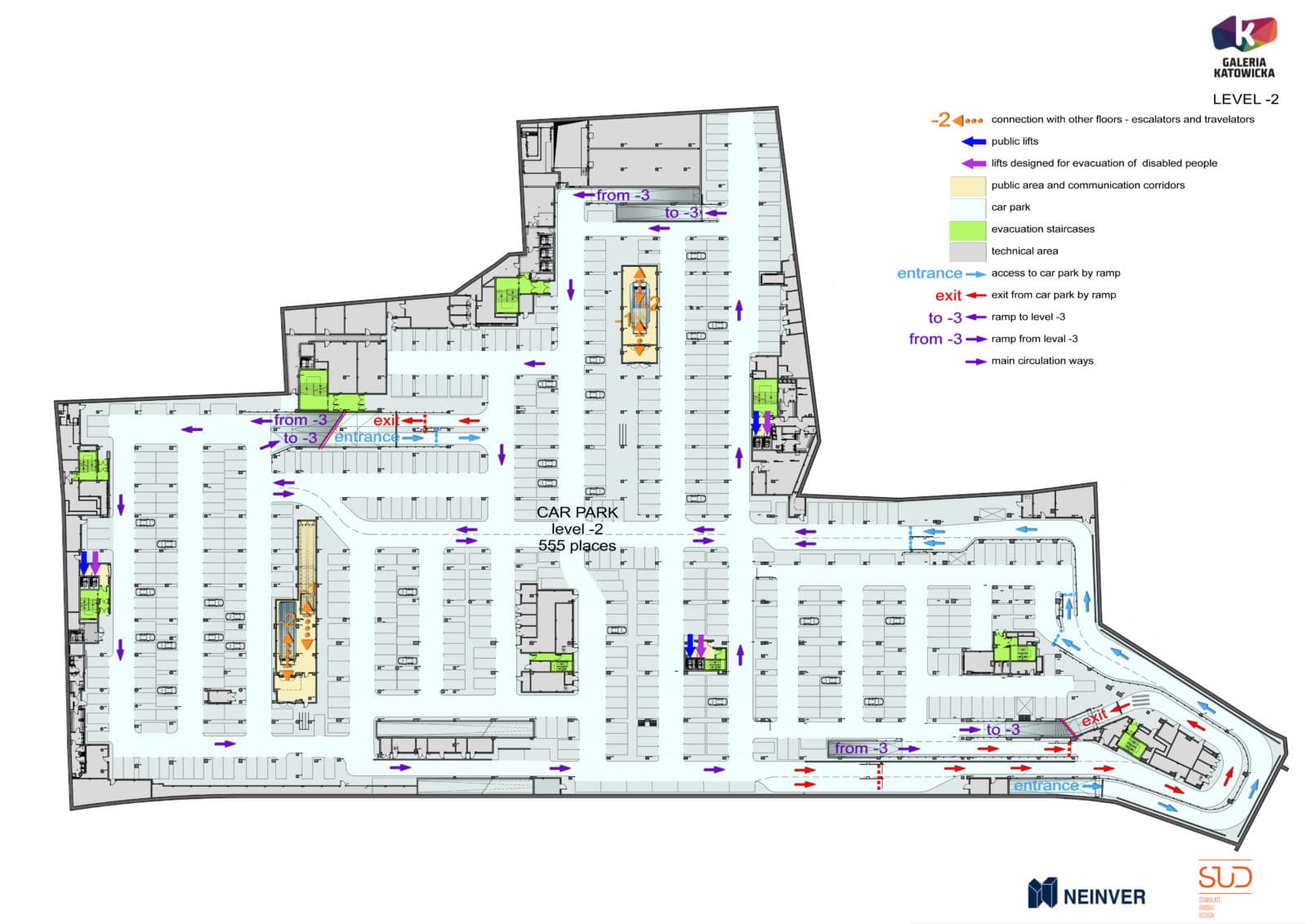 - Niveau -1 : connexion avec la gare de bus, supermarché, mode enfants, services, restaurants avec double entrée.