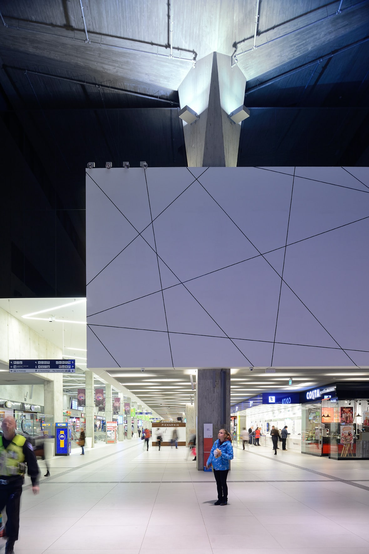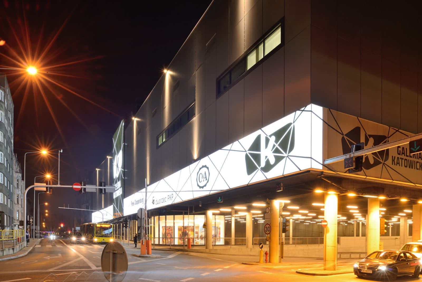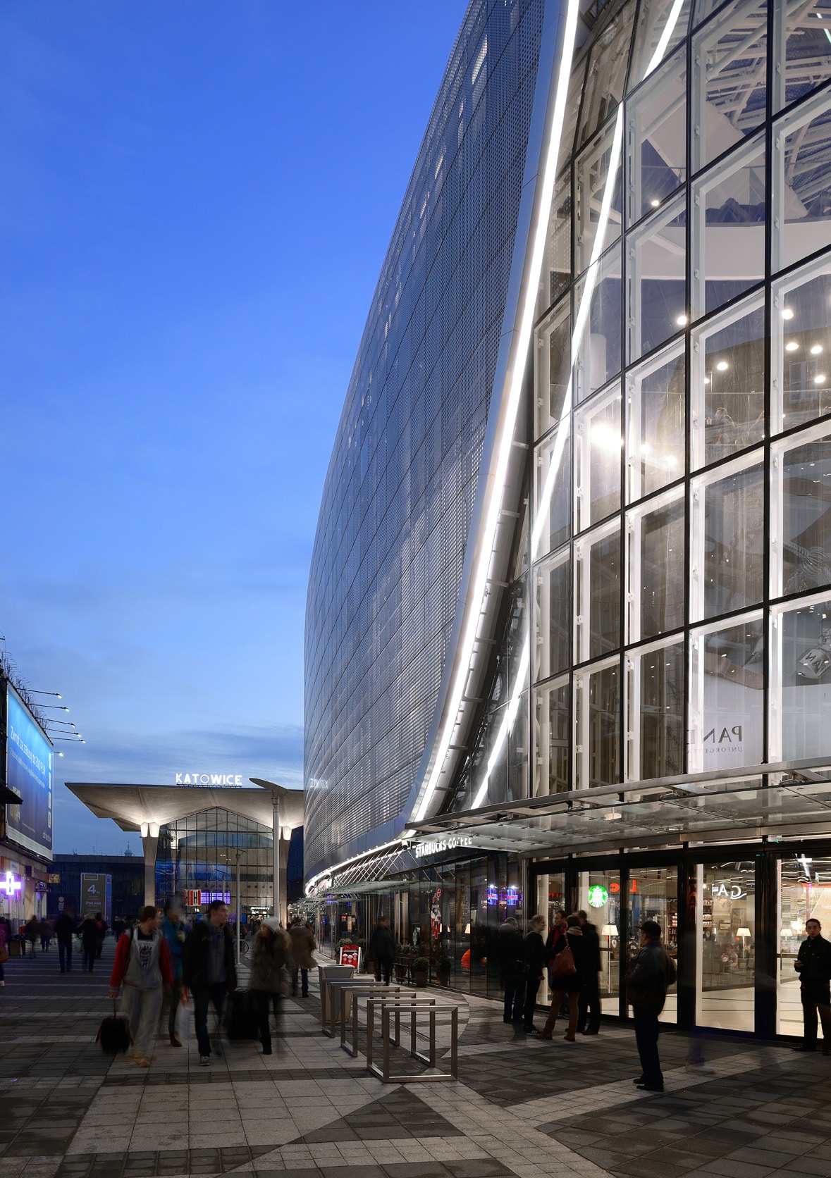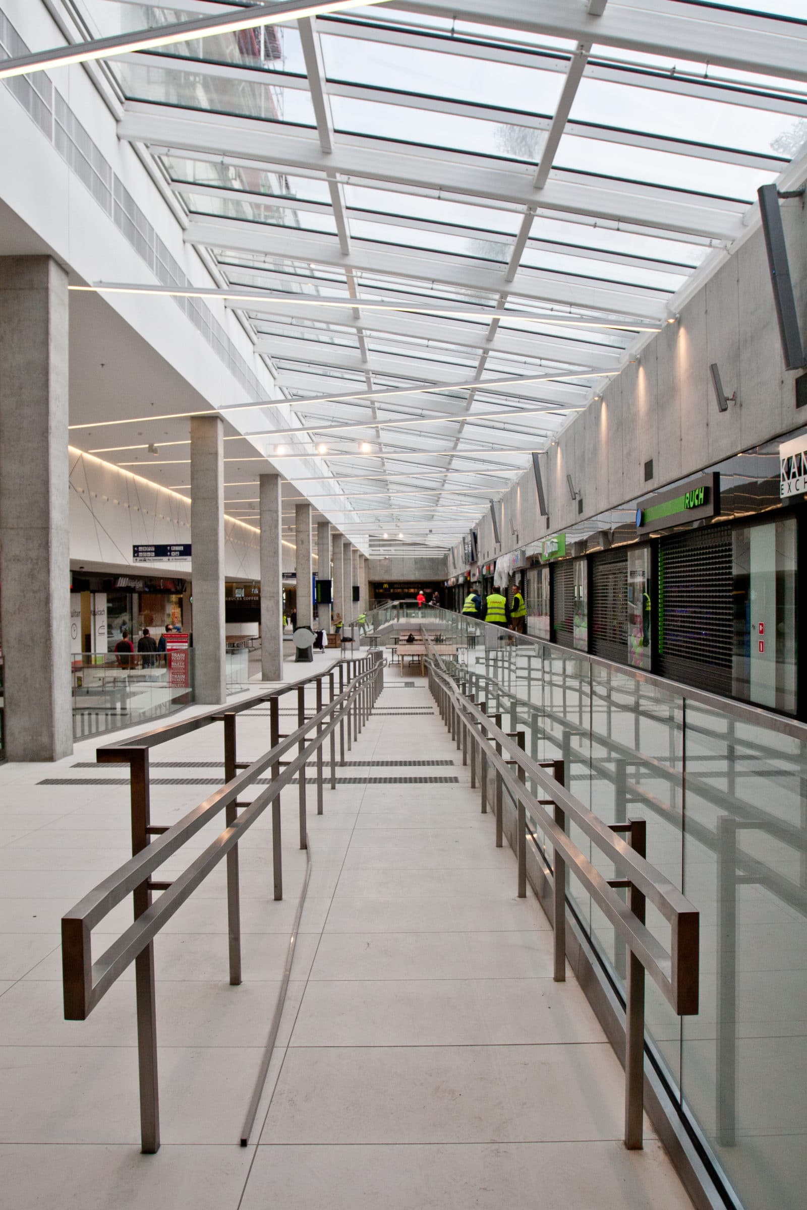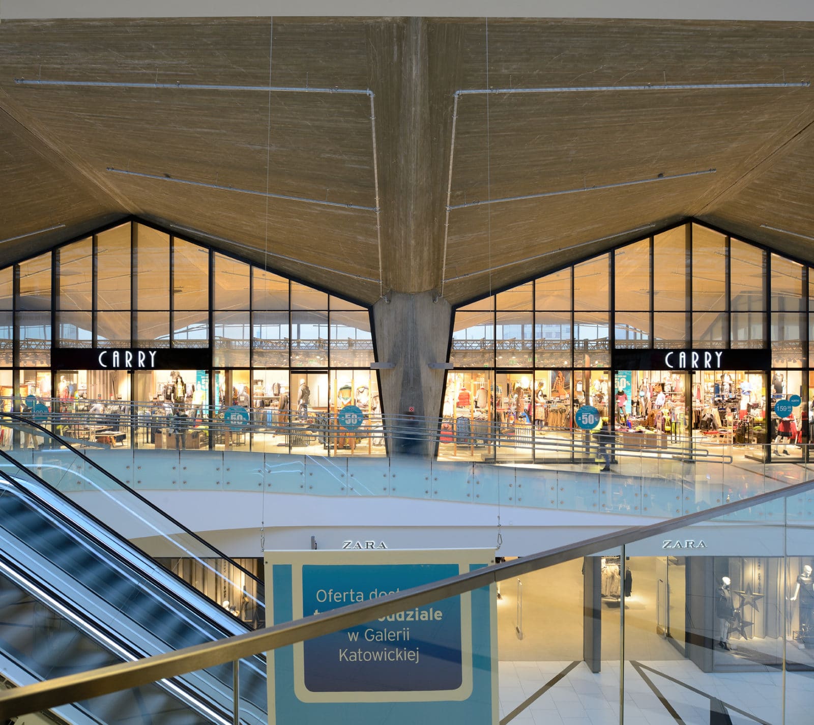 Ces spectaculaires devantures en verre (8m de hauteur) sont une première en Pologne.