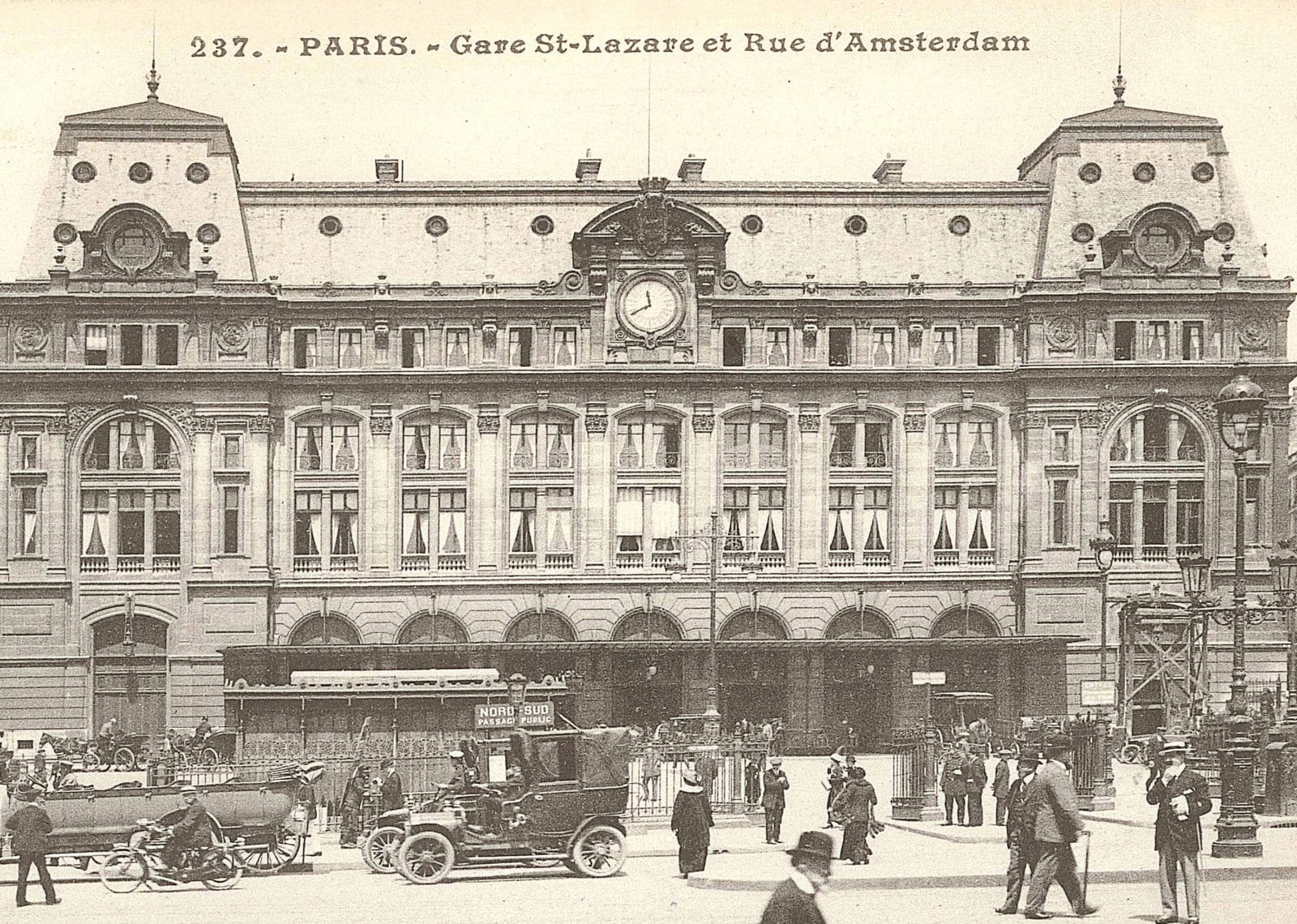 La gare s’est étoffée au fil du temps et au fil des moyens de transports, du grand hall de 1853 par Alfred Arman en passant par le bâtiment unificateur de Juste Lisch en 1885. C’est lors de l’exposition universelle que la gare commença à abriter d’autres services à se diversifier et devenir des pôles multimodaux comme on les connait aujourd’hui. Juste Lisch bâti un hôtel pour recevoir les visiteurs venu du Havre ou de Cherbourg par bateau, en 1905, l’arrivé du métro bouscule les flux de la gare et donne naissance aux premiers escaliers. Trente ans plus tard les commerces s’invitent dans la gare pour former la galerie marchande. Il faudra attendre 1972 pour voir les circulations verticales se mécaniser. En décembre 1884, la gare est inscrite au Monuments Historiques.
