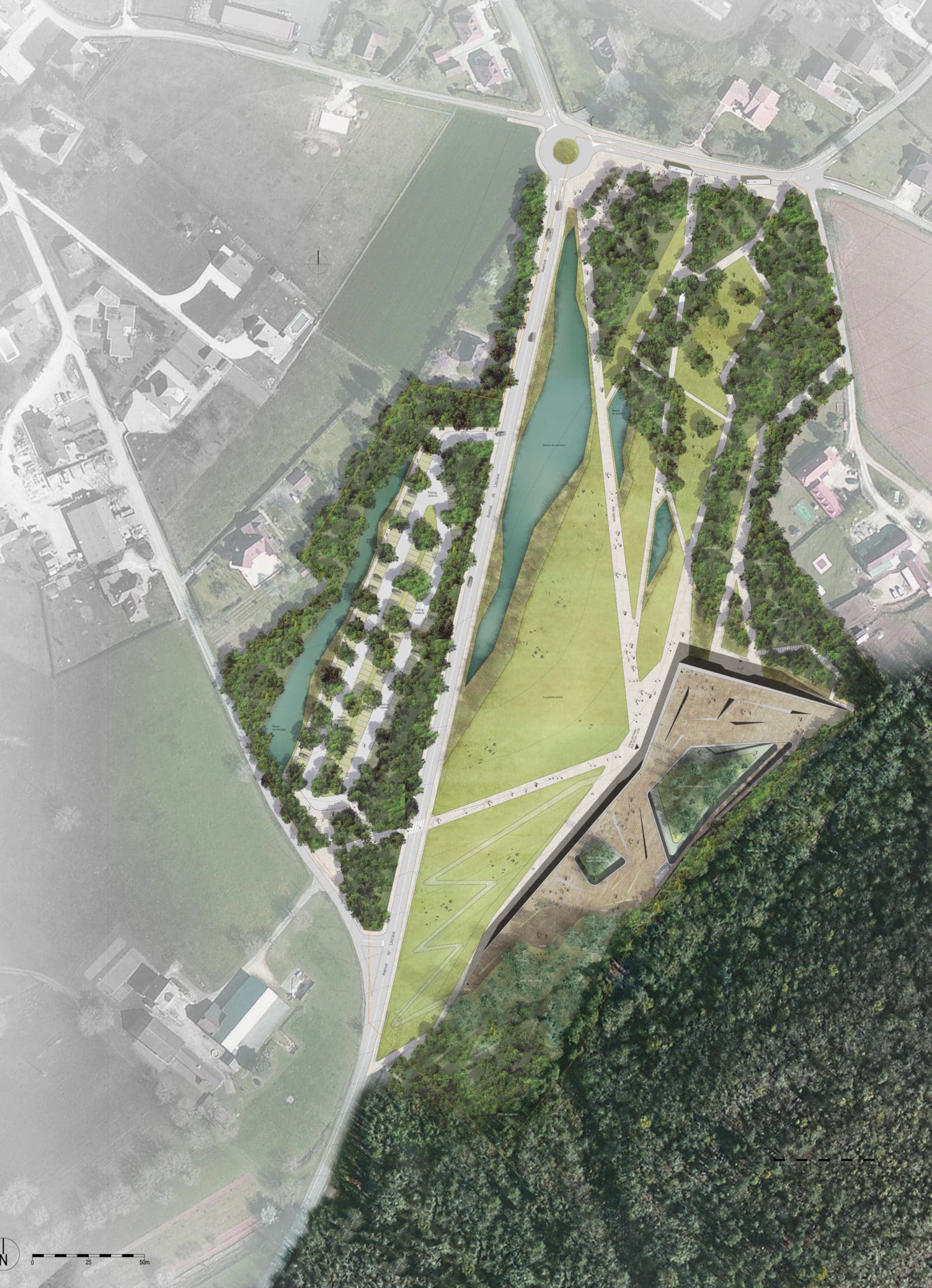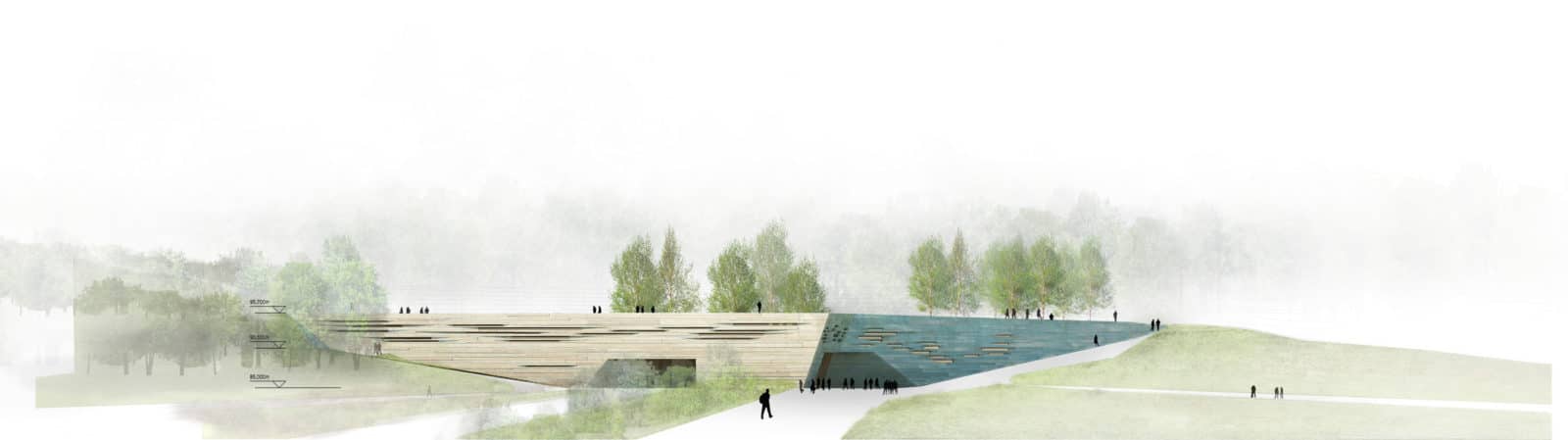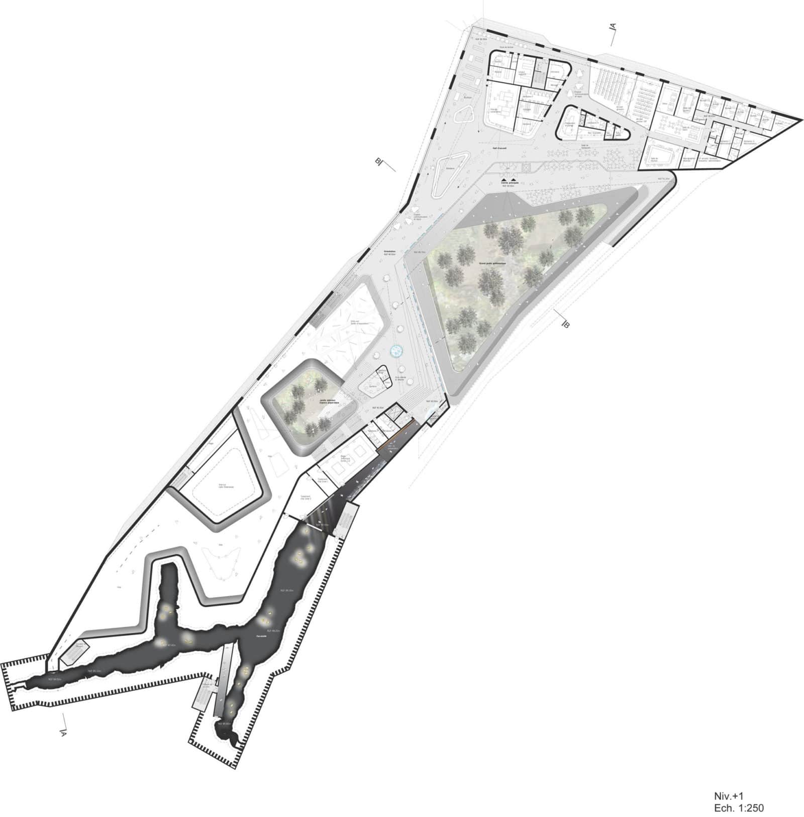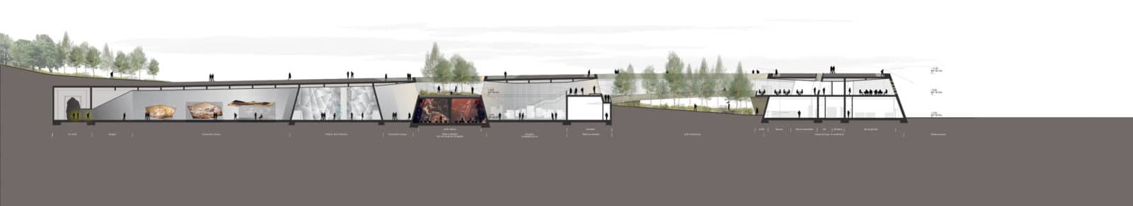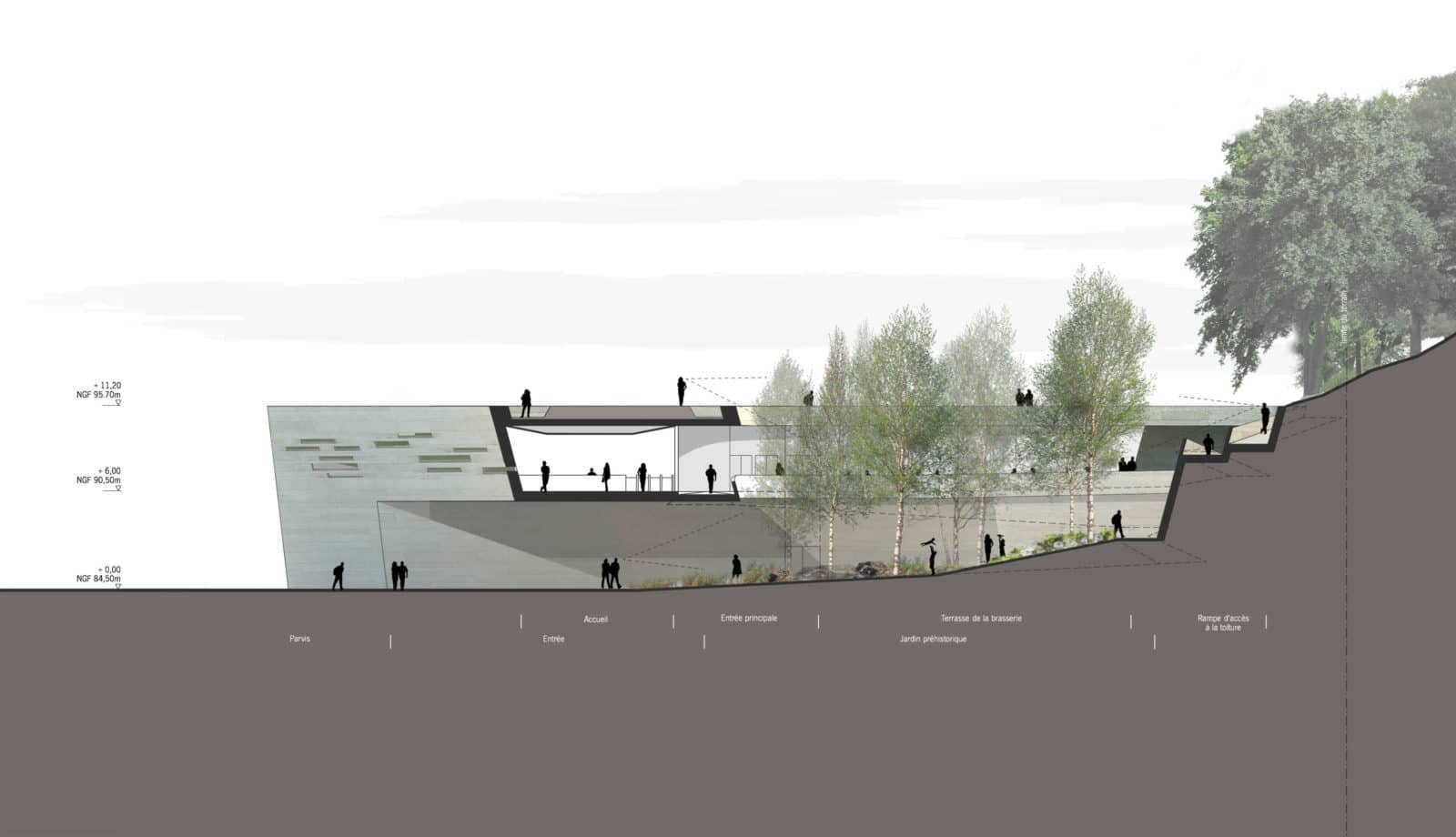Le projet des architectes allemands Auer & Weber fut classé troisième par les membres du jury. De forme trapézoïdale, le bâtiment profite de la pente du terrain pour venir s’ériger dans la vallée face à la commune de Montignac.