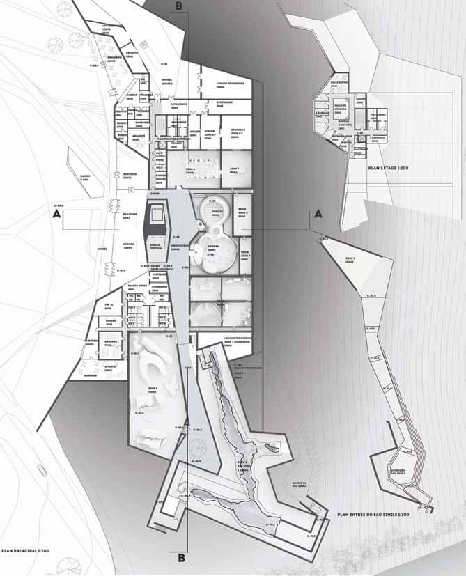 Le visiteur se plonge ensuite dans une confrontation entre l’art pariétal et l’art moderne. Cette salle sera entièrement tapissée de panneaux interactifs. Elle achèvera la visite pour s’ouvrir sur la brasserie et le restaurant plein air. Je vous invite à présent à découvrir le projet classé deuxième.