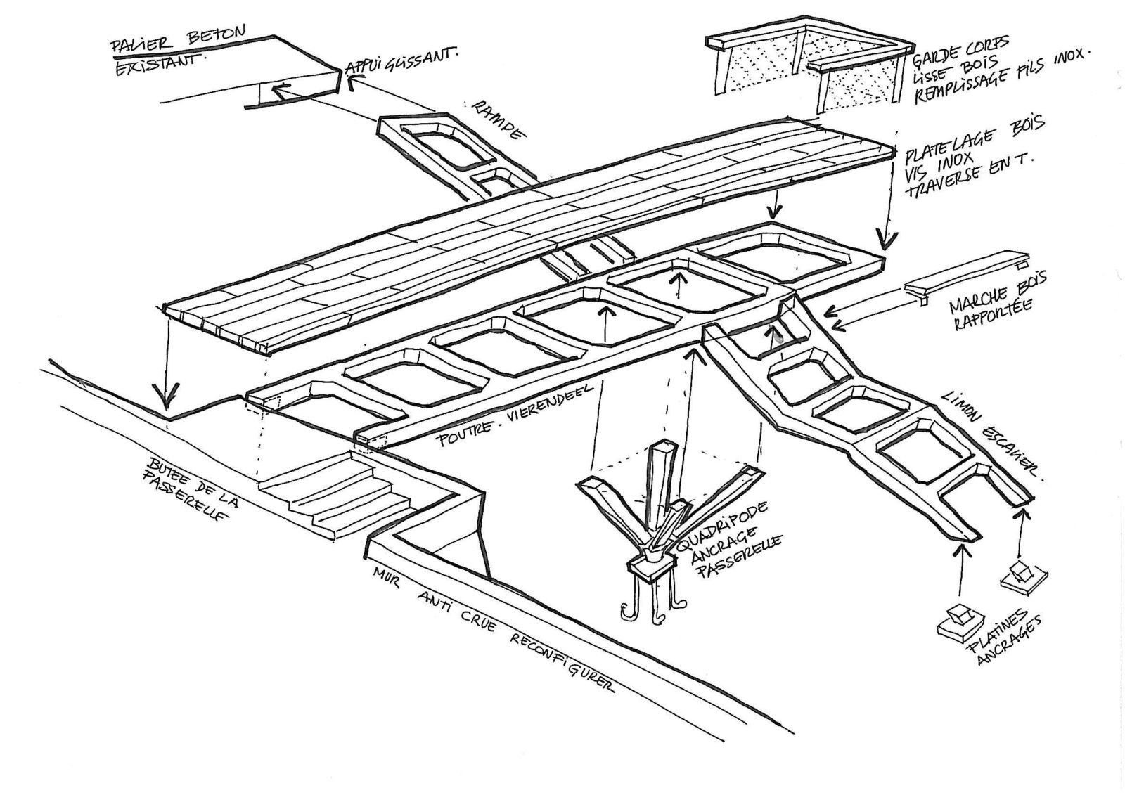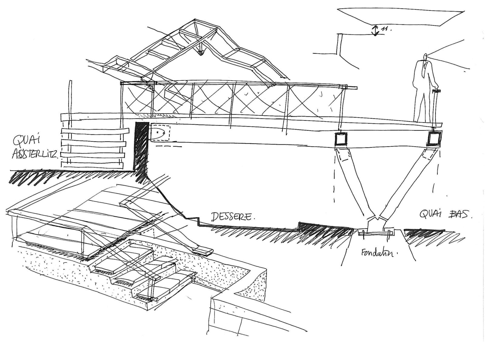 Notre projet consiste à retrouver le concept d’origine des frères Arsène Henry « traité dans un esprit de dépouillement et de simplicité » qui retrouve la transparence. Nous proposons une nouvelle alliance entre patrimoine et modernité réalisée par la suppression de toutes les interventions « pastiches » remplacer par une nouvelle peau transparente qui éclairera le paysage de la Seine comme une « lanterne magique ».