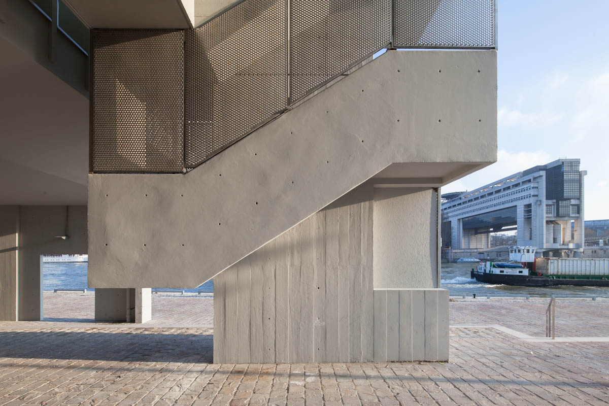 Ce projet de réhabilitation s’est élaboré à partir d’une analyse du bâtiment actuel au regard des objectifs du programme. La Maison de la Batellerie s’intègre dans un ensemble de bâtiments qui forme une façade urbaine sur la Seine. L’implantation stratégique de cette « Maison » entre Seine et quai, offre des vues exceptionnelles, mais différentes transformations ont supprimé cette perméabilité. De plus en 1970, une surélévation de la salle de bourse a été réalisée par un « pastiche » de tôles nervurées imitant la façade béton. Cet ajout rend « lourd et massif » le volume en excroissance.