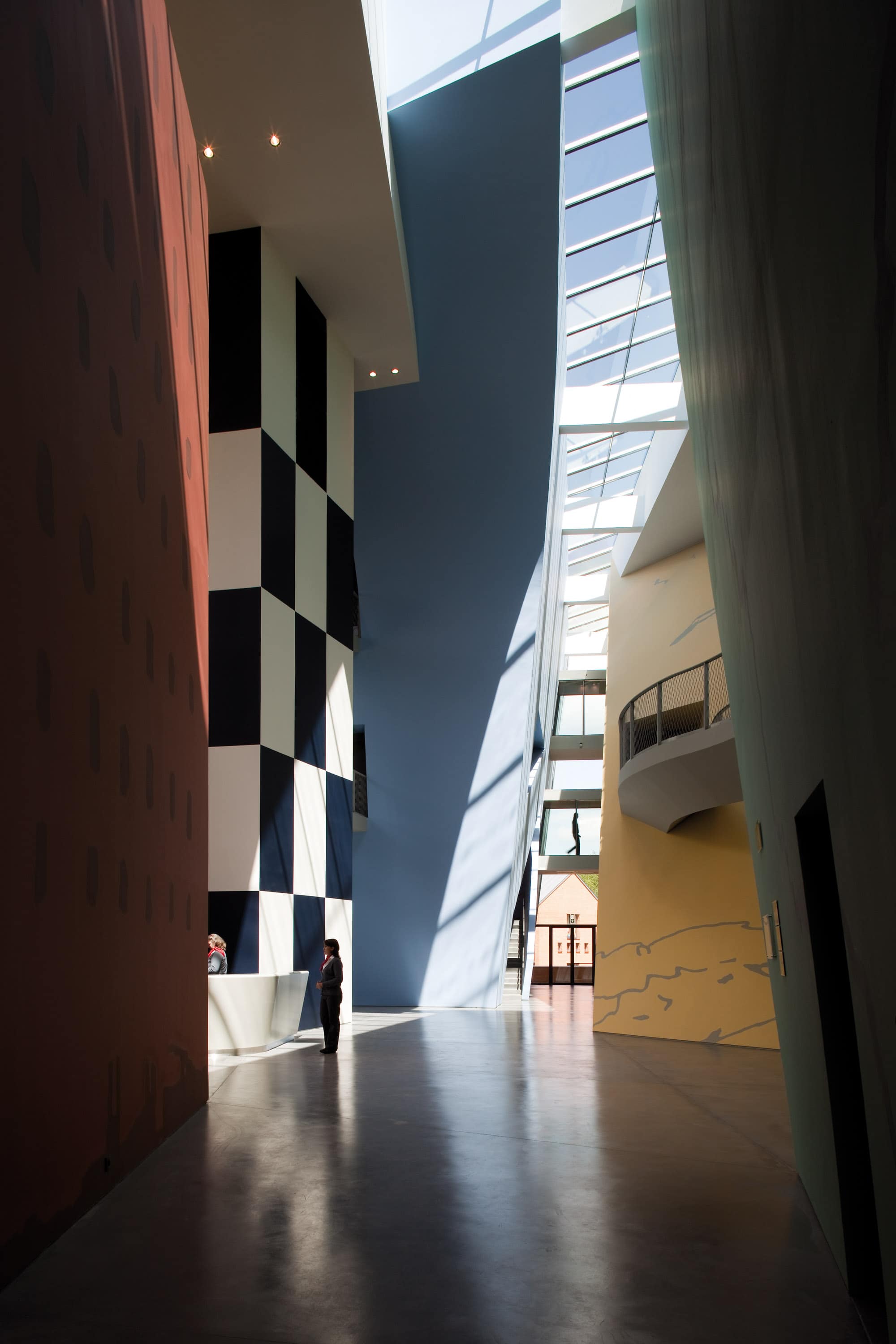 Le Musée Hergé se distingue par quatre volumes colorés, en référence à la colorimétrie des bandes dessinées. À la rencontre de ces espaces, une grande faille couverte par une verrière qui permet de baigner l’espace de circulation et de mettre en avant quelques extraits graphiques de l’artiste et de dévoiler l’ascenseur, masqué d’un grand damier bleu nuit et blanc.