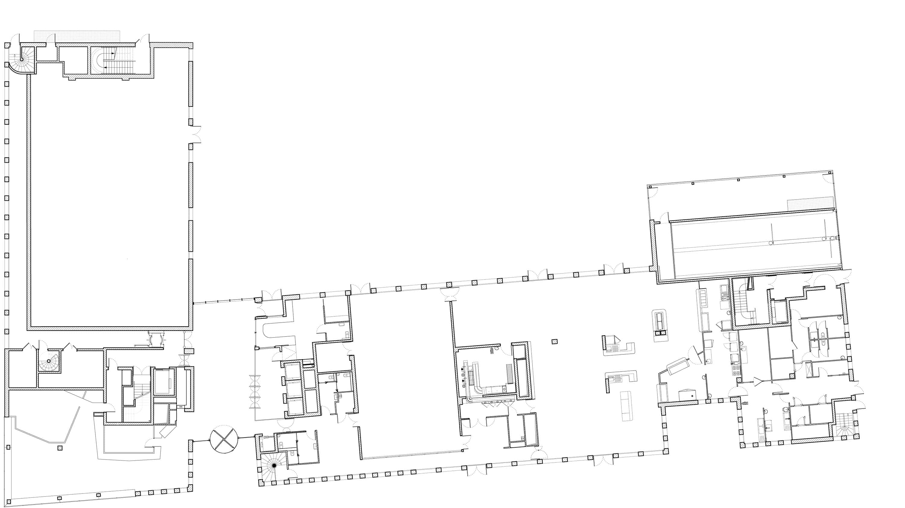 Parmi les contraintes de l’entreprise, on relèvera le besoin de sécurité, mais aussi la facilité d’accès des différents espaces de l’immeuble ayant des niveaux de sécurités différents. Du côté de l’image, c’est la volonté de s’ouvrir vers la ville avec plus de transparence sur son activité. Cela se traduit par une organisation en L avec deux ailes qui se rejoignent au sein d’une faille en verre abritant les paliers des circulations.