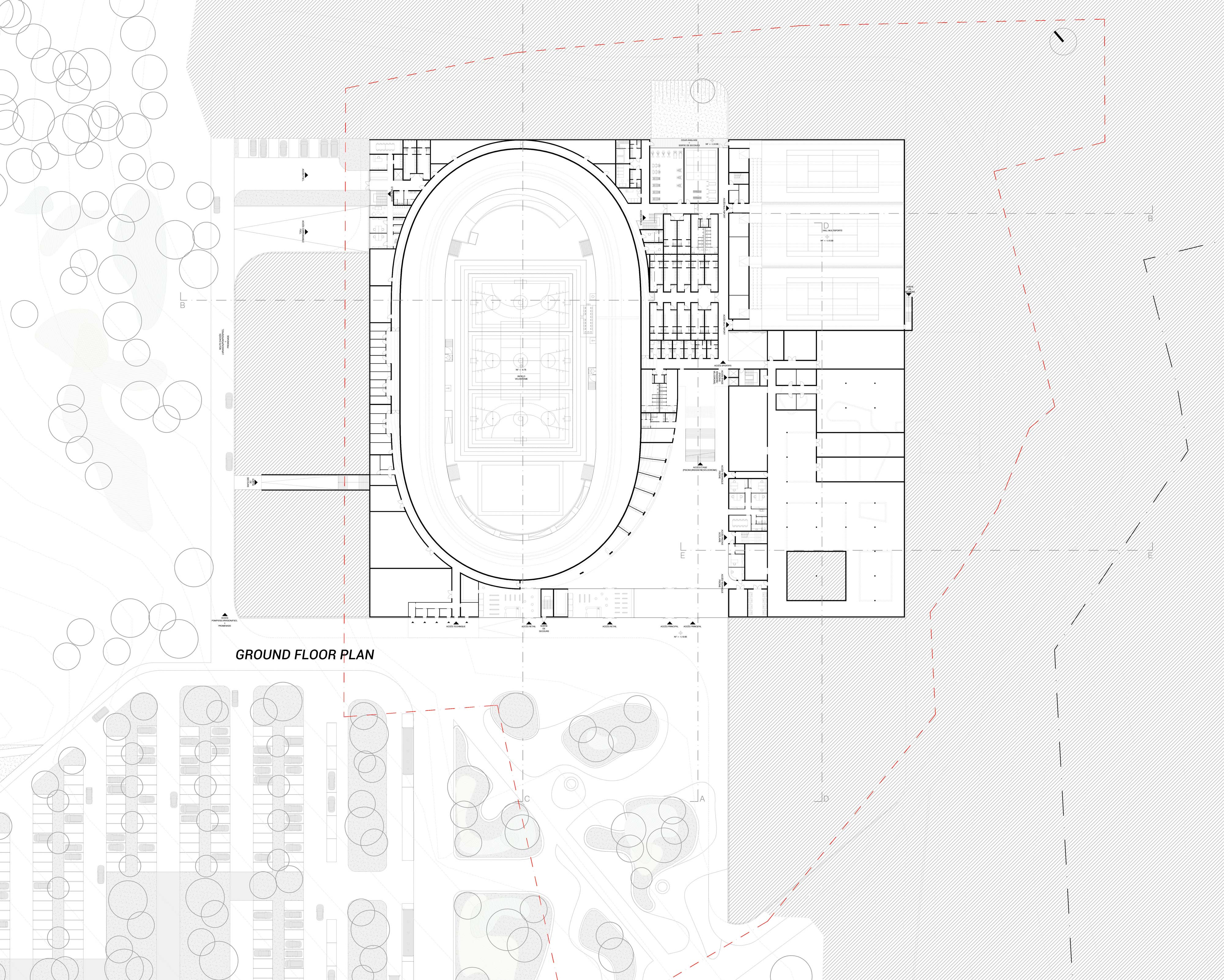 Composition architecturale du complexe sportif